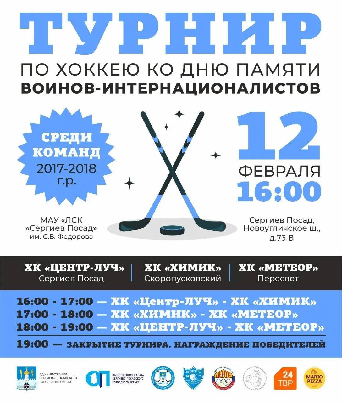 В Сергиевом Посаде состоится турнир по хоккею, посвященный Дню памяти воинов-интернационалистов