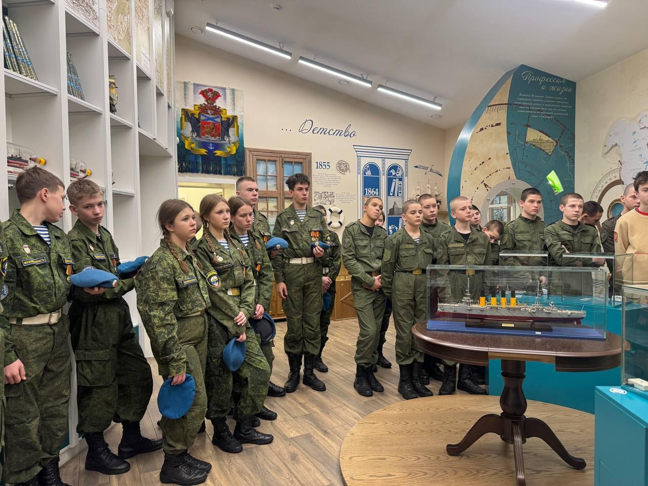 Кадеты и воспитанники военно-патриотических клубов Богородского округа посмотрели тематическую презентацию, погрузившись в хронологию событий тех лет. В экспозиции музея представлены подлинные фрагменты крейсера «Варяг», а также личные вещи Всеволода Федоровича Руднева. В одном из залов представлены стилизованные экспозиции, которые рассказывают о детстве, юности, увлечениях, службе знаменитого командира. Здесь можно рассмотреть фотографии, личные вещи Руднева, переданные музею потомками, изучить генеалогическое древо семьи.