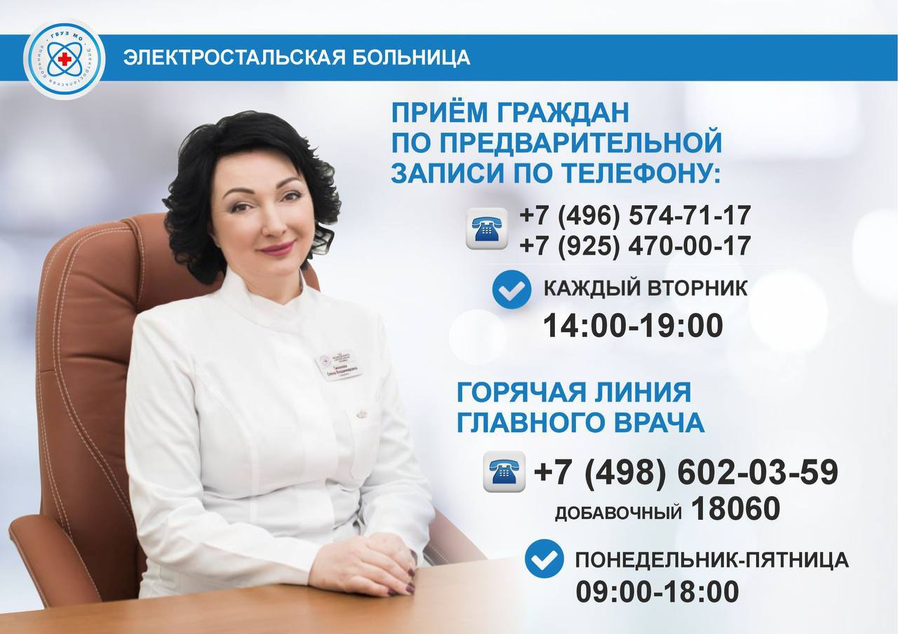 Главный врач Электростальской больницы проводит личный приём граждан.