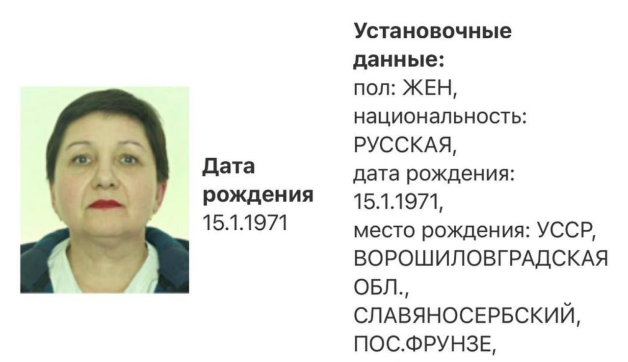 МВД России внесло в федеральную базу разыскиваемых Зинаиду Серебрицкую, которую подозревают в пособничестве при подготовке покушения. Карточка с её фотографией и персональными данными опубликована на официальном сайте ведомства.