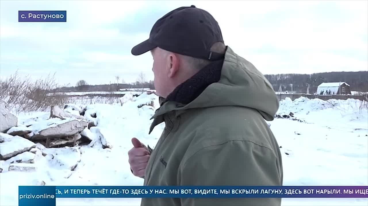 Племзавод ведёт работы по поиску и устранению источника воды, вскрыты лагуны, экскаватор углубляет канаву.