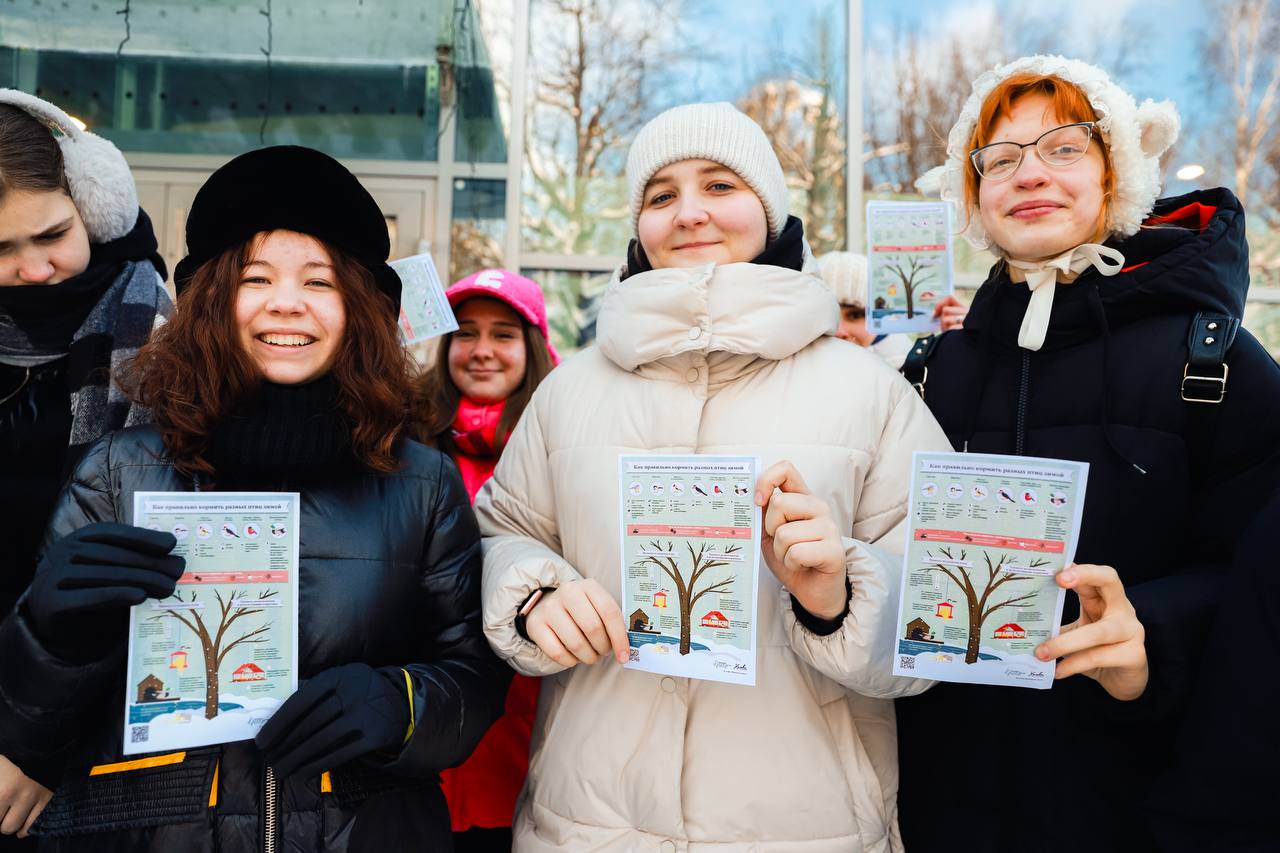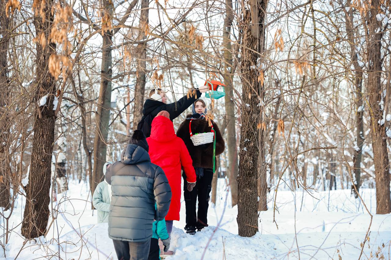 * Во время квеста теория тут же превратилась в практику: вооружившись знаниями, участники наполнили кормушки, которые развешаны в паре, полезными угощениями для синиц, снегирей и белок.