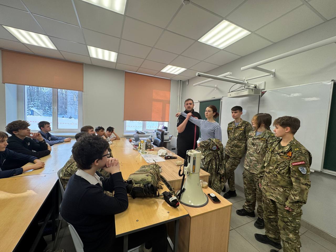 В школе №8 имени Матвеева прошёл мастер-класс по тактической медицине для кадет. Занятие провели опытные наставники — представители химкинского отделения Ассоциации ветеранов СВО Николай Смирнов и Антон Зенькович.