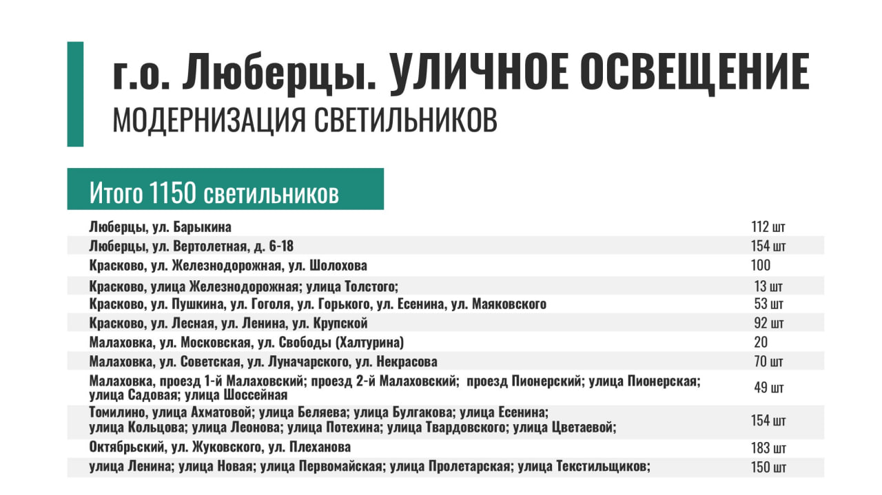Мы продолжаем наращивать программу по модернизации уличного освещения.В прошлом году новые линии появились по 10 адресам.