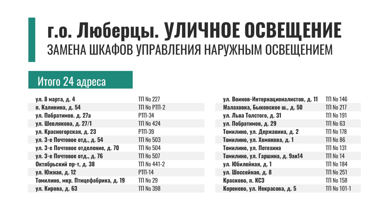 Также в текущем году заменим 24 шкафа управления наружным освещением и 1150 старых светильников на новые светодиодные.