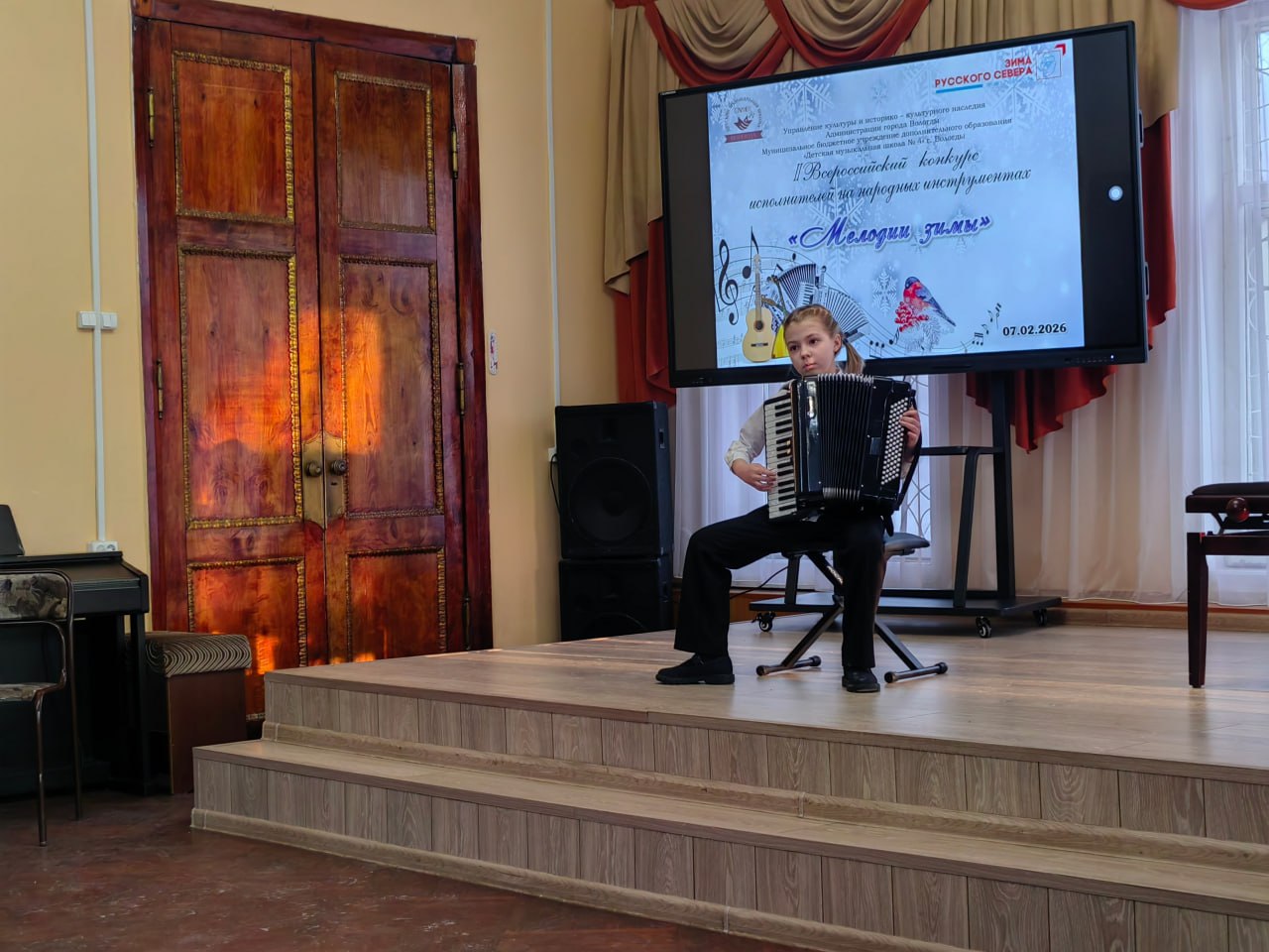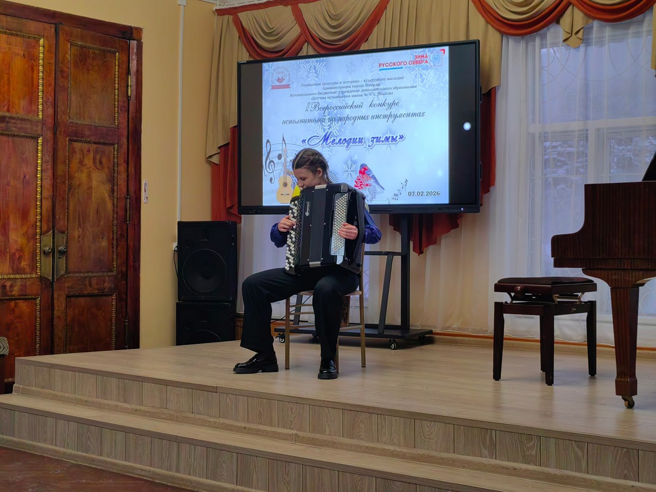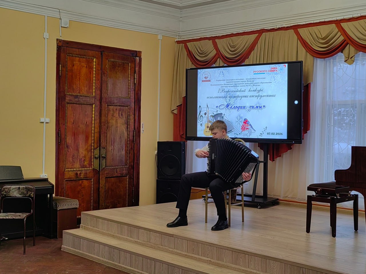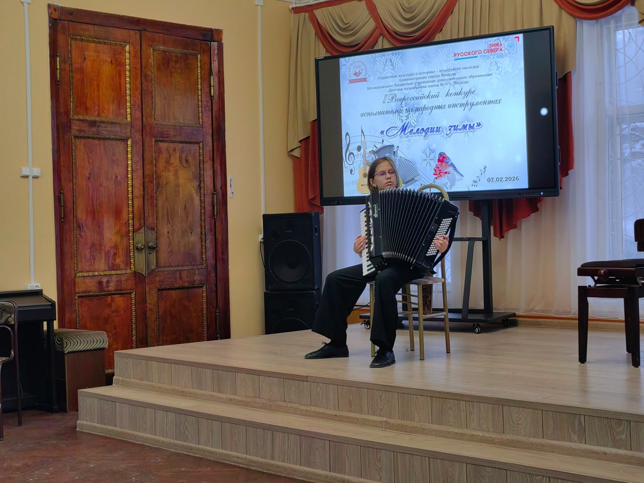 В Вологде в минувшие выходные состоялся II Всероссийский конкурс исполнителей на народных инструментах Мелодии зимы. В нём приняли участие юные музыканты из более чем 10 регионов России. Среди конкурсантов из Московской области Образцовый коллектив Московской области оркестр баянистов-аккордеонистов Экспромт и солисты долгопрудненской Детской школы искусств.