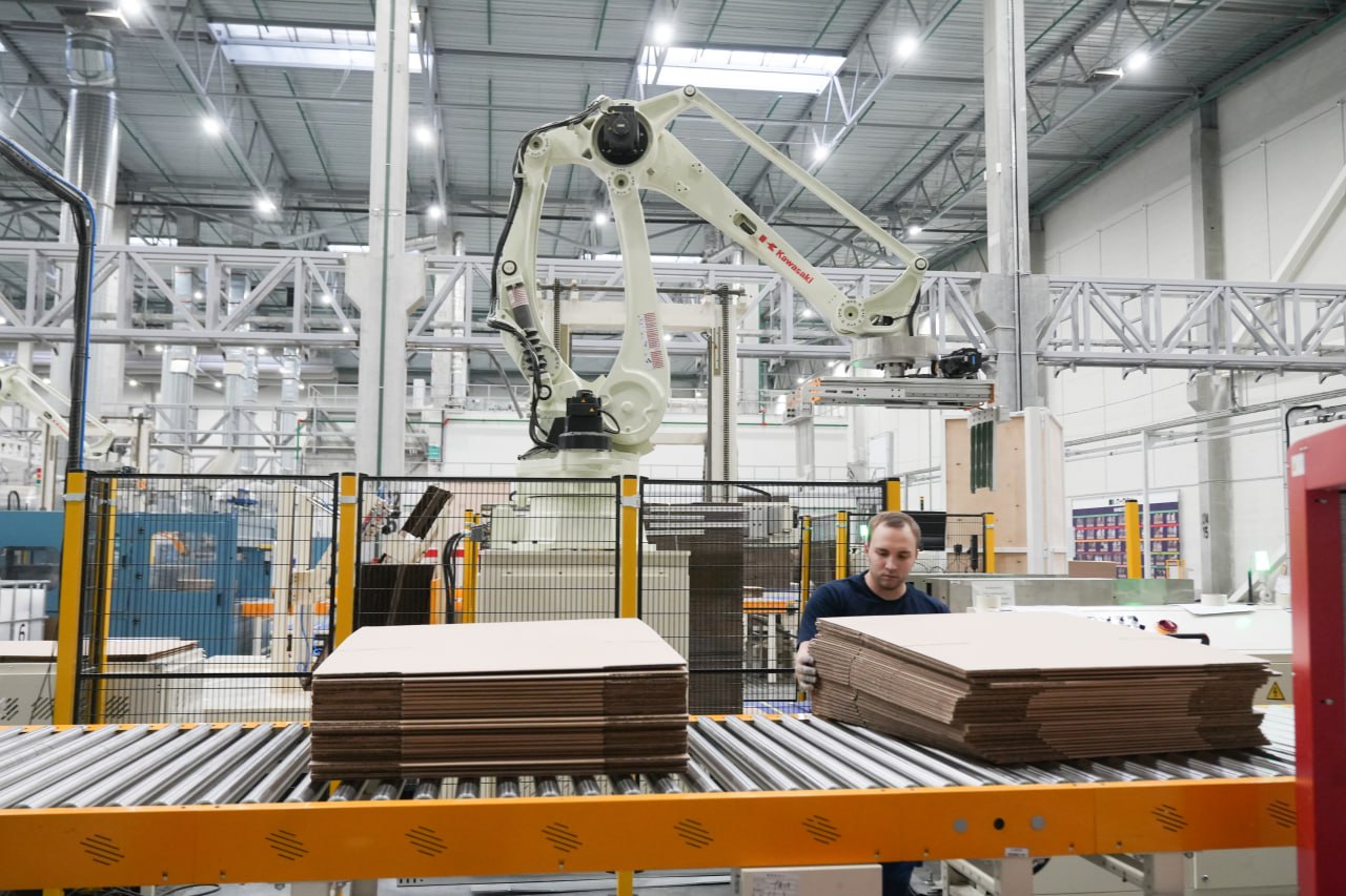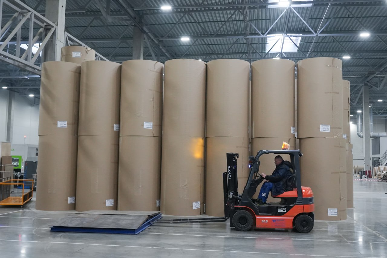 Предприятие делает ставку на экологичность: 80% сырья — переработанная макулатура. Производство максимально автоматизировано, включая роботов-укладчиков.