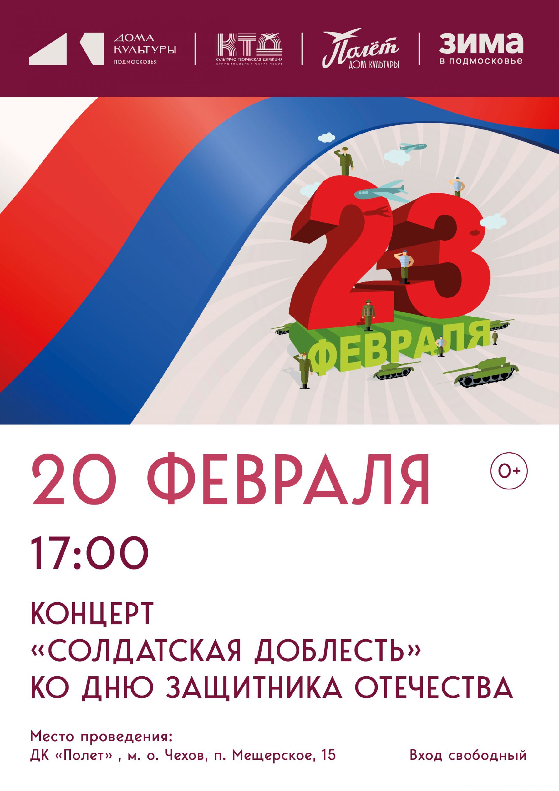 Приглашаем жителей и гостей посёлка Мещерское на праздничных концерт, посвящённый Дню защитника Отечества!
