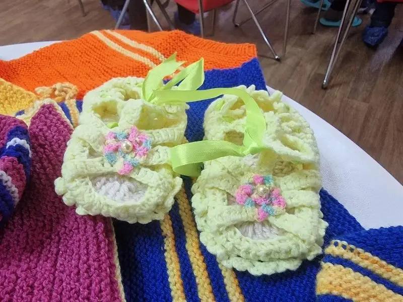 На занятиях по вязанию они создали партию детских вещей для перинатального центра в Коломне. В этом году малышам, особенно нуждающимся в особой заботе, отправятся уютные вязаные конверты, шапочки и носочки.