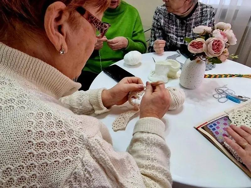 Особой популярностью пользуются уроки рукоделия, которые проводит специалист Елена Кузьмина. Раз в неделю она учит желающих вязать на спицах и крючком.
