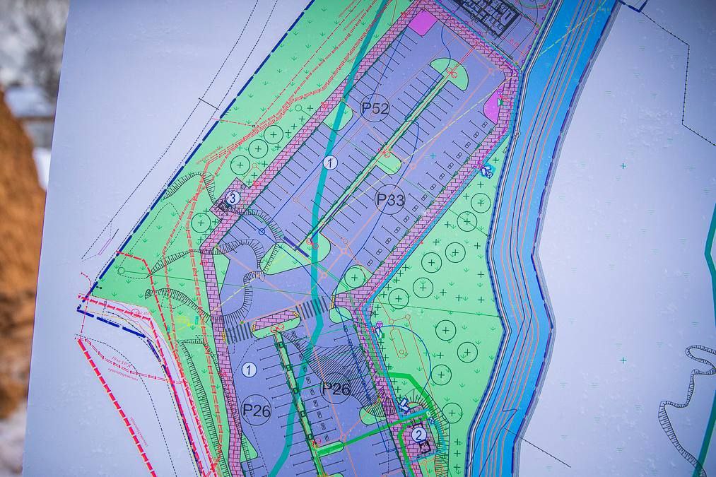 Сейчас подрядчик формирует основание тротуаров и парковки, возводит габионные стены, прокладывает линии электроснабжения и освещения, оформляет русло ручья. На территории хозяйственного двора начали монтаж павильонов. В работе задействованы 15 единиц техники и 28 специалистов. Для электромобилей предусмотрены 5 зарядных станций.