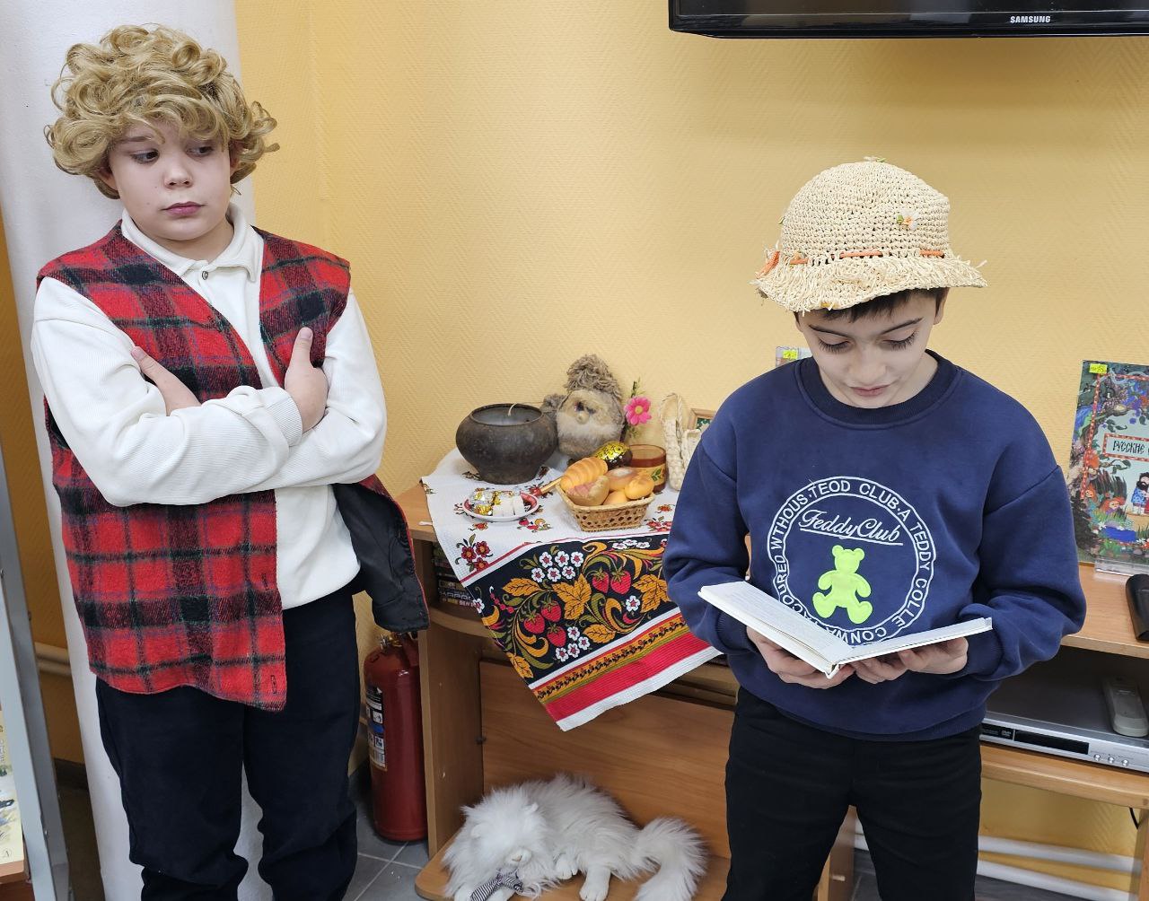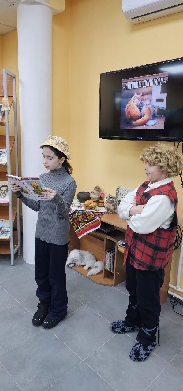 О старинном славянском празднике День угощения Домового ведущий рассказал юным читателям. На этом празднике всё должно быть как у людей-и угощение, и подарки, и веселье. Веселье точно было, потому что в гости пришёл настоящий Домовёнок (в исполнении Ивана Полкового), очень похожий на героя книги Татьяны Александровой Домовёнок Кузя. Вместе с ребятами главы из этой книги и читали. Время пролетело незаметно. и ребята с удовольствием взяли книгу для самостоятельного прочтения.