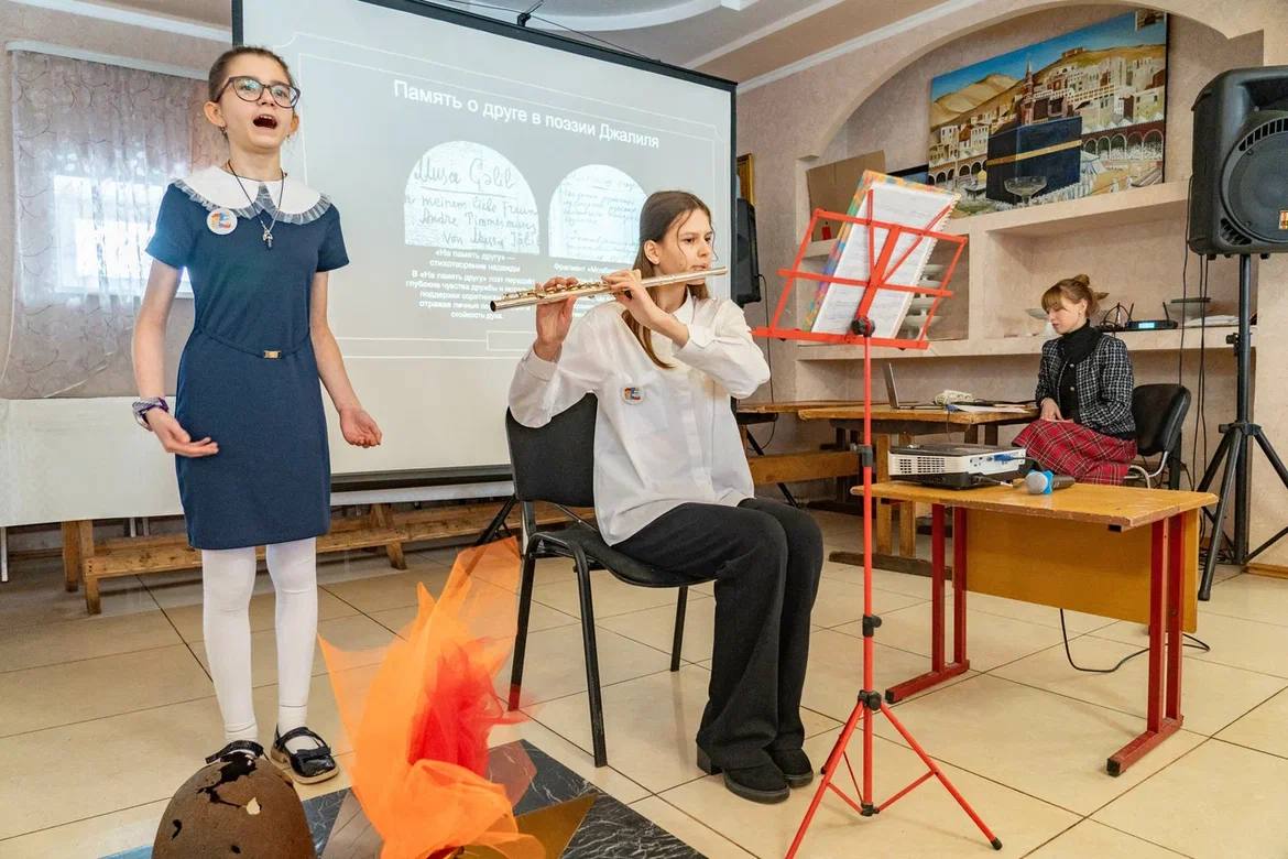 Для гостей со стихотворениями выступили ученики гимназии №15 Орехово-Зуева.