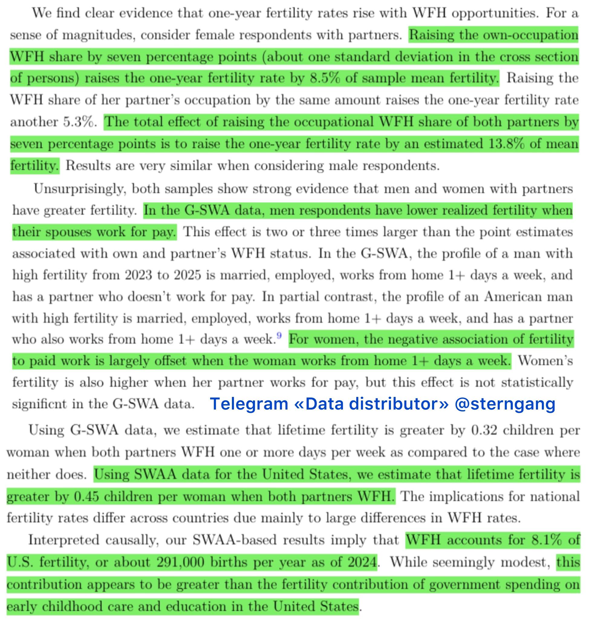 3) Авторы приходят к выводу, что удаленная работа увеличила рождаемость в США в последние годы на 8%, или на 291 тысячу рождений в год. Это одна из самых эффективных, но незаметных демографических мер в современном мире.