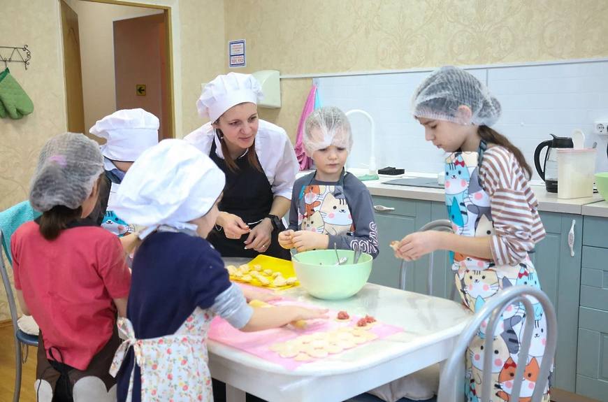 Ребята из отделения реабилитации учились готовить домашние пельмени вместе с председателем местного Совета депутатов Мариной Веремеенко, представителями Центра «Забота» и Клуба женщин СВО.