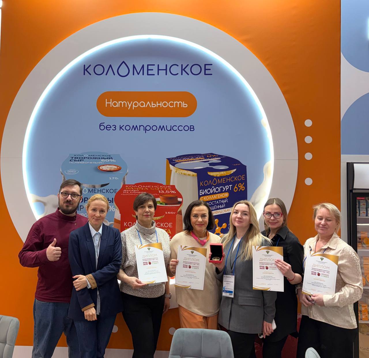 Высшую награду получили новые продукты коломенской компании: биойогурт с коллагеном и бифидобактериями, произведённый термостатным способом, ароматный йогурт «Коломенский» с оригинальным сочетанием вкусов вишни, черешни и шоколада, молочный десерт «Панна котта» из сливок с шоколадным вкусом и пудинг «Коломенский» со вкусом натуральной ванили, созданный на основе сливок.
