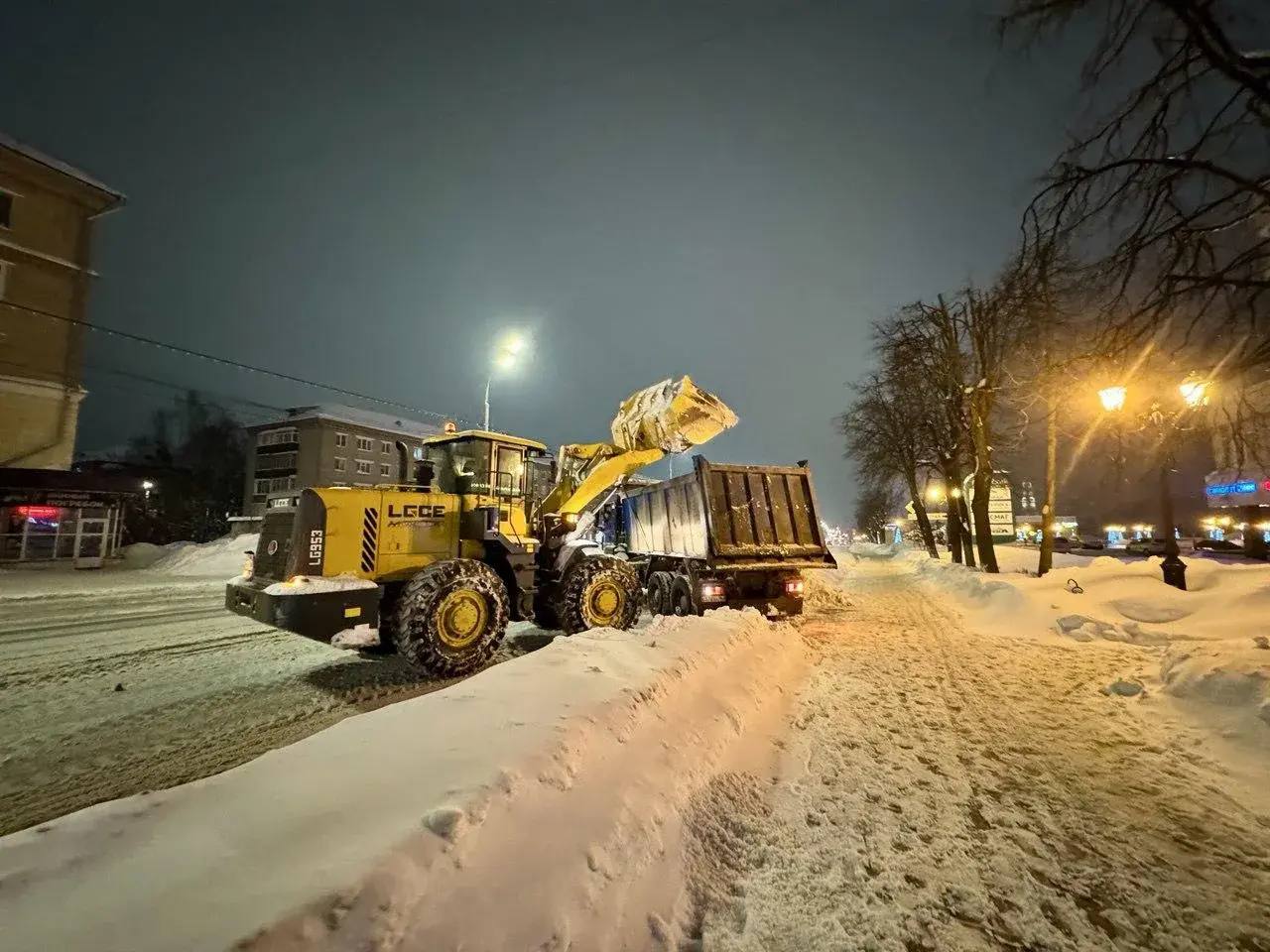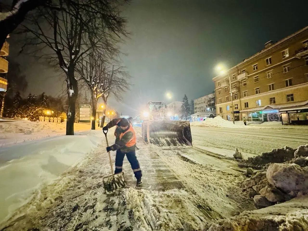 Ночью работали комбинированные дорожные машины: они расчищали проезжую часть и обрабатывали её пескосоляной смесью. Ночная смена МБУ «Благоустройство СП» стартовала с Вознесенской улицы — в районе вокзала.