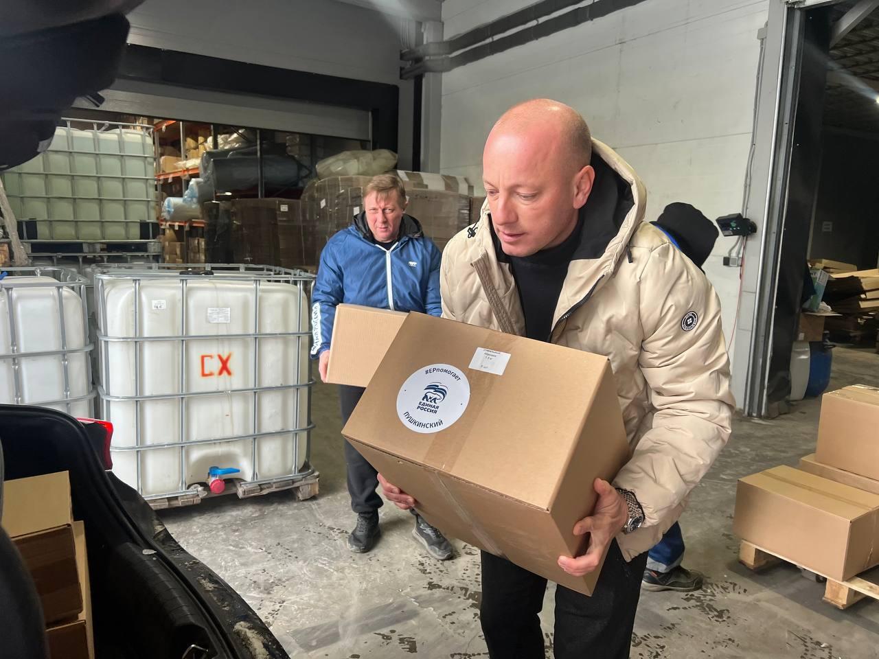 Депутаты Пушкинского Дмитрий Кульков и Михаил Сухарев, а также уполномоченный главы округа Ольга Алексеева передали очередную партию гуманитарной помощи волонтёрской группе «Своих не бросаем» для дальнейшей отправки в зону спецоперации.