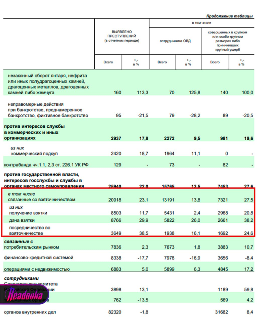 За 2025 год полиция выявила 20 918 эпизодов взяточничества, из которых 7 321 — в крупном или особо крупном размере, следует из статистики МВД, с которой ознакомилась Readovka. В 2024 году этот показатель составил около 17 тыс — то есть прирост год к году составил почти четверть. Из этого количества преступлений с получением взятки связаны 8,5 тыс эпизодов, а с дачей — 8,7 тыс. При этом МВД выявило 3,6 тыс преступлений, связанных с посредничеством во взяточничестве.