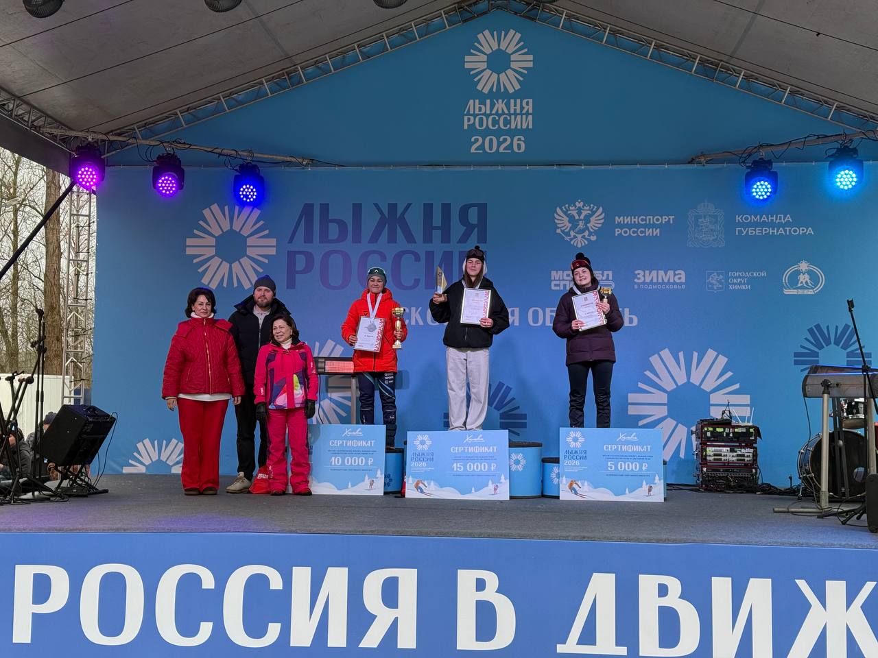 Трёхкратная Олимпийская чемпионка, депутат Государственной думы Ирина Роднина и глава Химок Инна Федотова награждают лучших спортсменов «Лыжни России-2026»