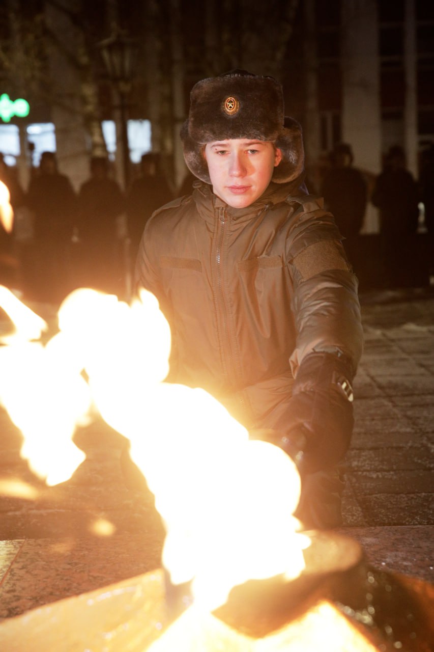 В память о погибших жителях нашего округа от Вечного огня зажгли факелы, вспомнили поименно тех, кто не вернулся. Воспитанники кадетского корпуса и юнармейцы склонились над Вечным огнём, чтобы взять частичку священного пламени и пронести его в шествии. В честь воинов-интернационалистов около 21 школы возложили цветы.