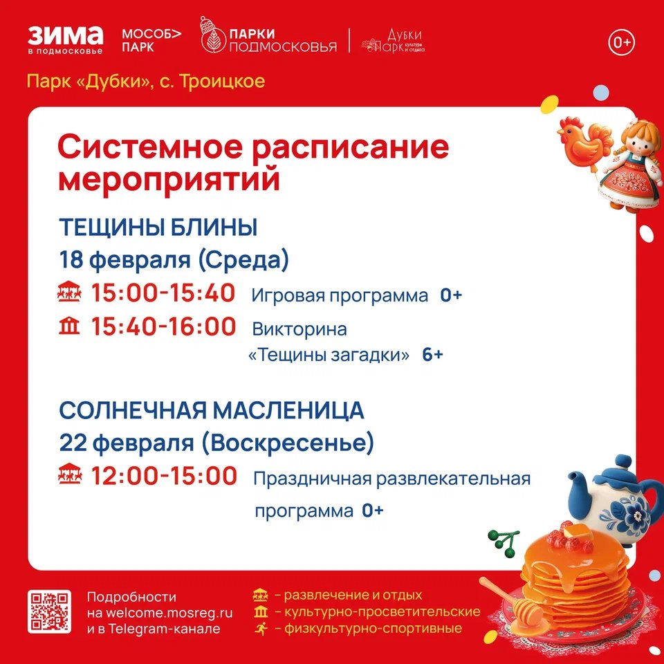 Расписание на неделю в Парках Чехова (16 февраля - 22 февраля)