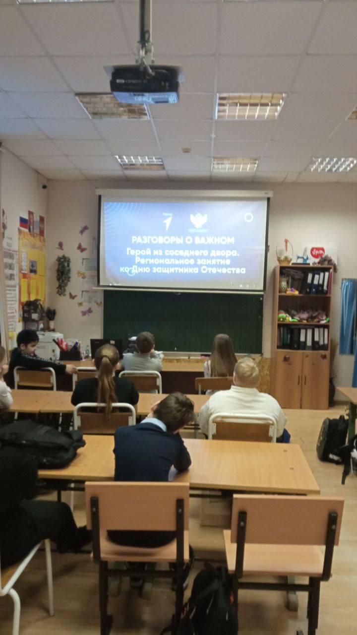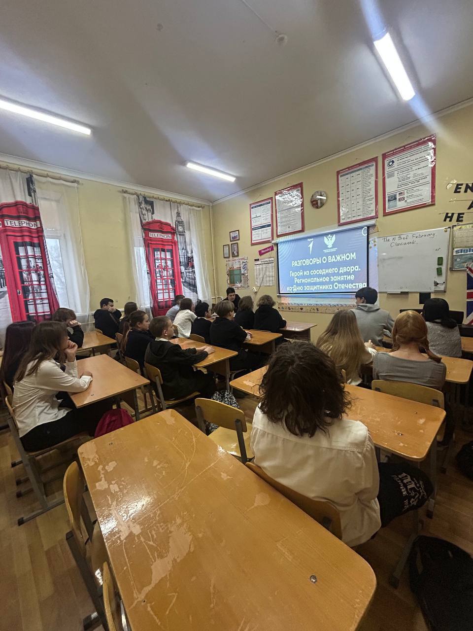 Далее во всех классах были проведены «РАЗГОВОРЫ О ВАЖНОМ» на тему: «Герой из соседнего двора. Региональное занятие ко Дню защитника Отечества».