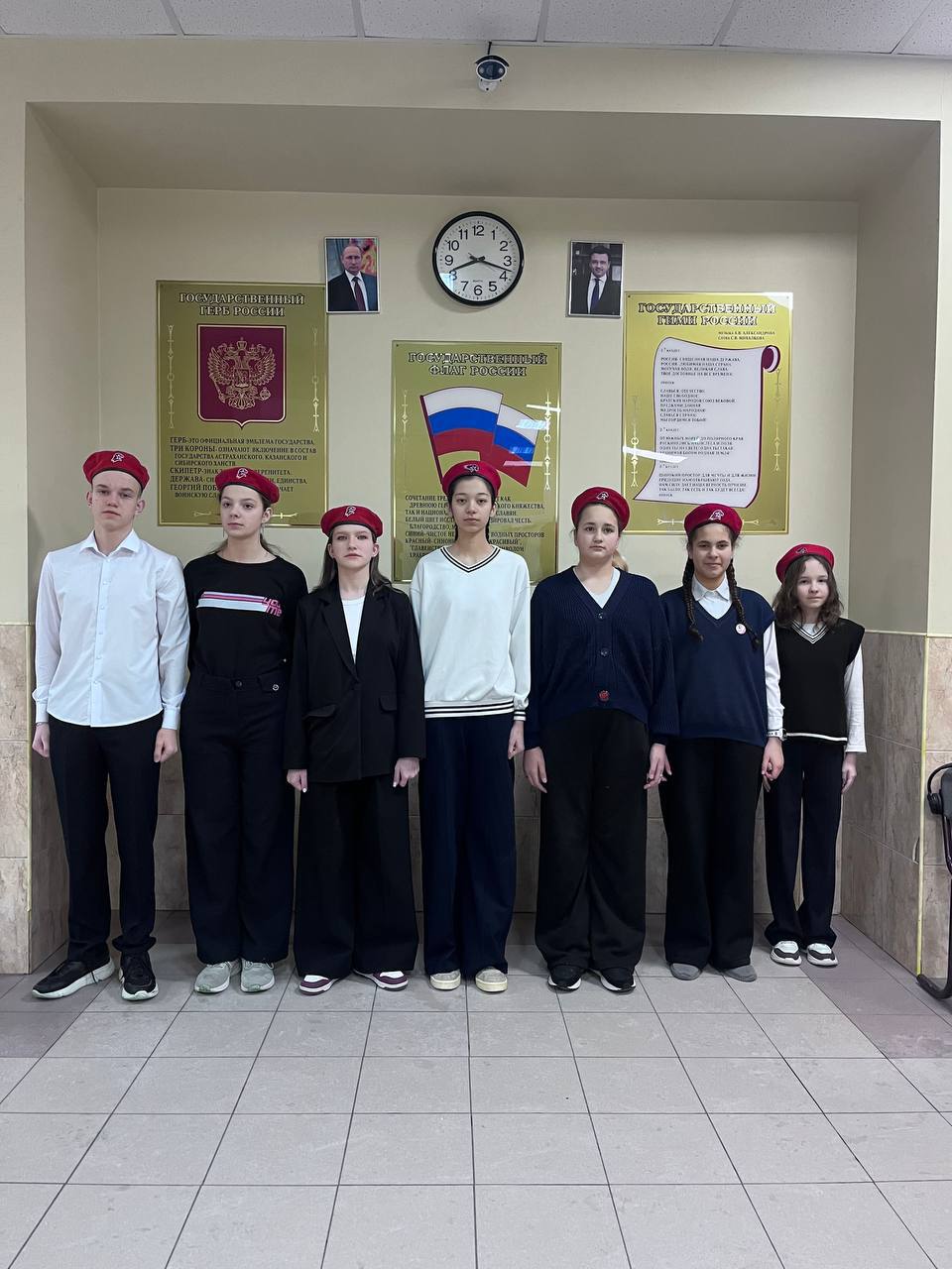 Новая неделя в лицее началась с традиционного выноса флага отрядом Юнармии «Комета» и исполнения гимна Российской Федерации .