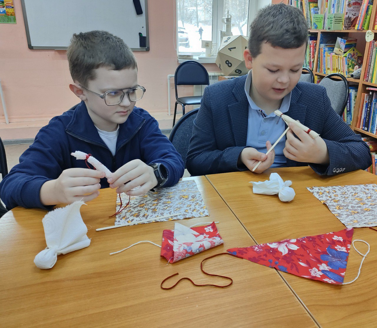 Детская библиотека наполнилась смехом: ребята мастерили «КуклуМасленичку» — символ народного праздника;