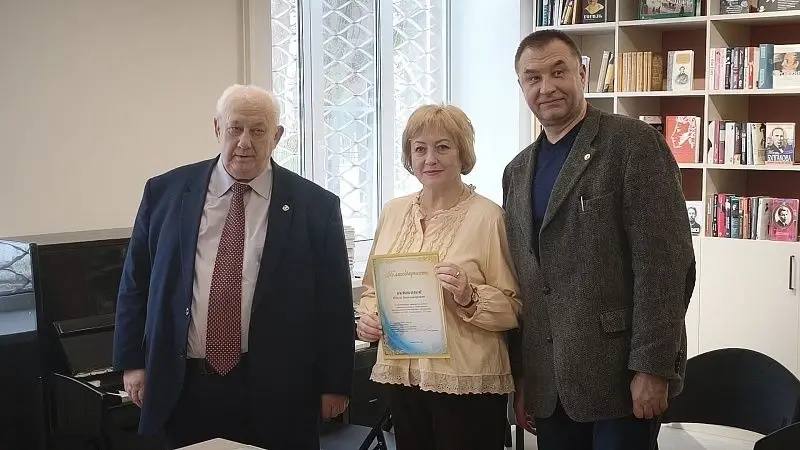 Виктор Лысенков вручил благодарности ЛИТО «Радуга» им. И.И. Лажечникова Сергею Антипову и активным членам литературного объединения, а также передал в дар Центральной библиотеке книгу «Бронницы от А до Я».