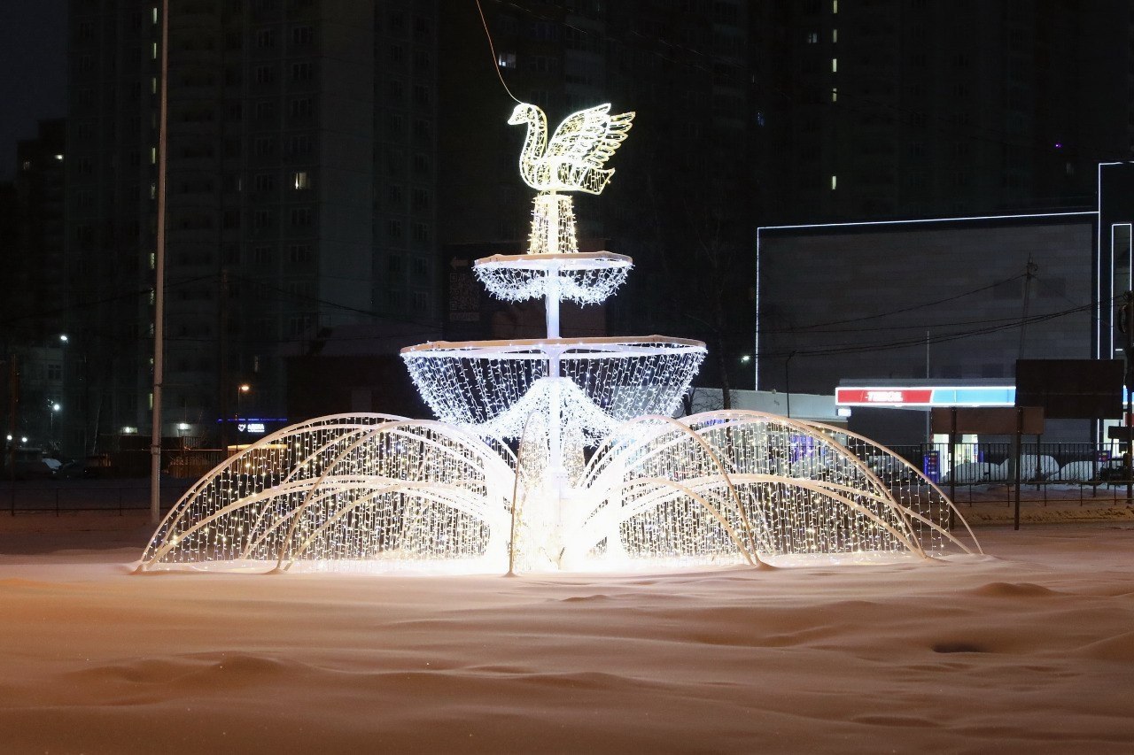 Напомним, светодиодные украшения – ёлка (на пересечении пр-та Пацаева и ул. Дирижабельная), купол для фонтана на площади у театра «Город» и «Лебедь» впервые были установлены в нашем городе в декабре 2025 года и стали новогодним сюрпризом для жителей.