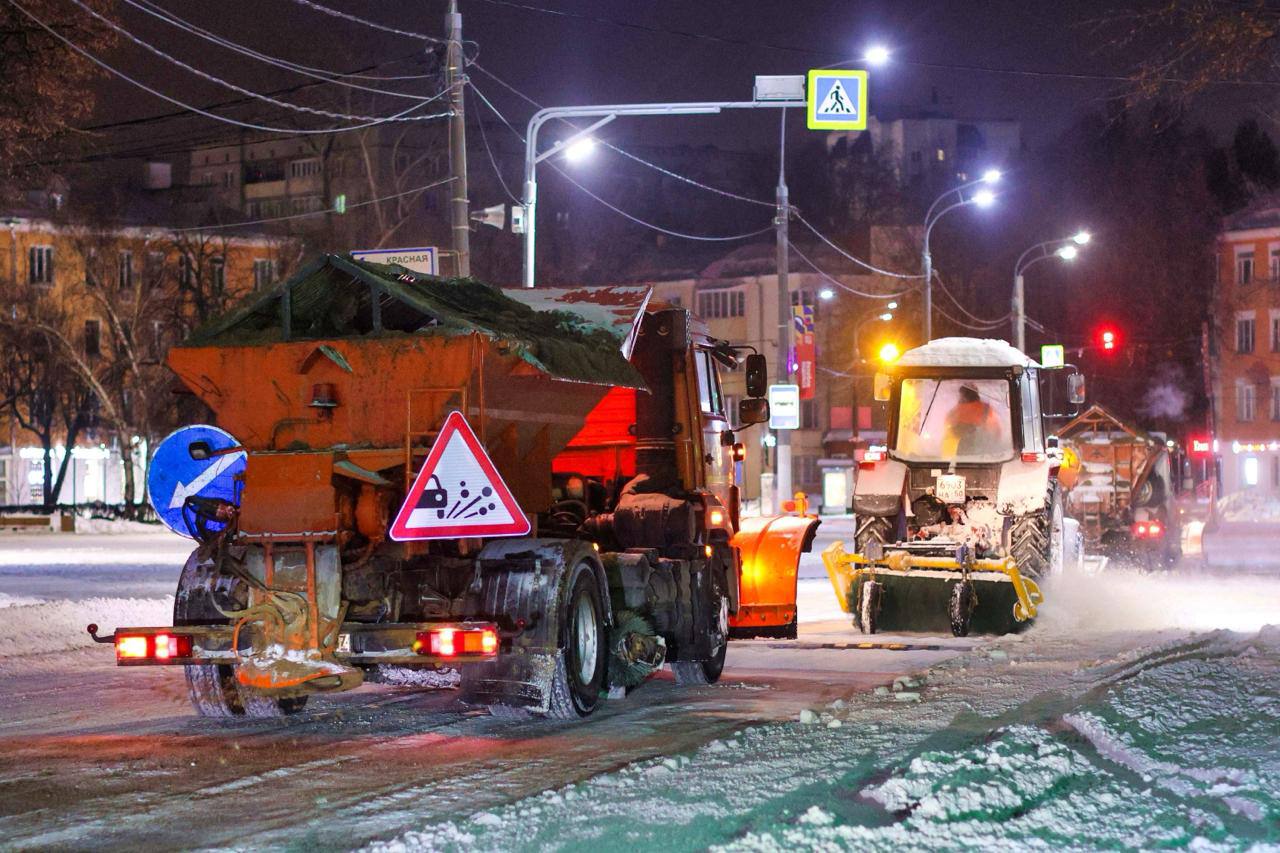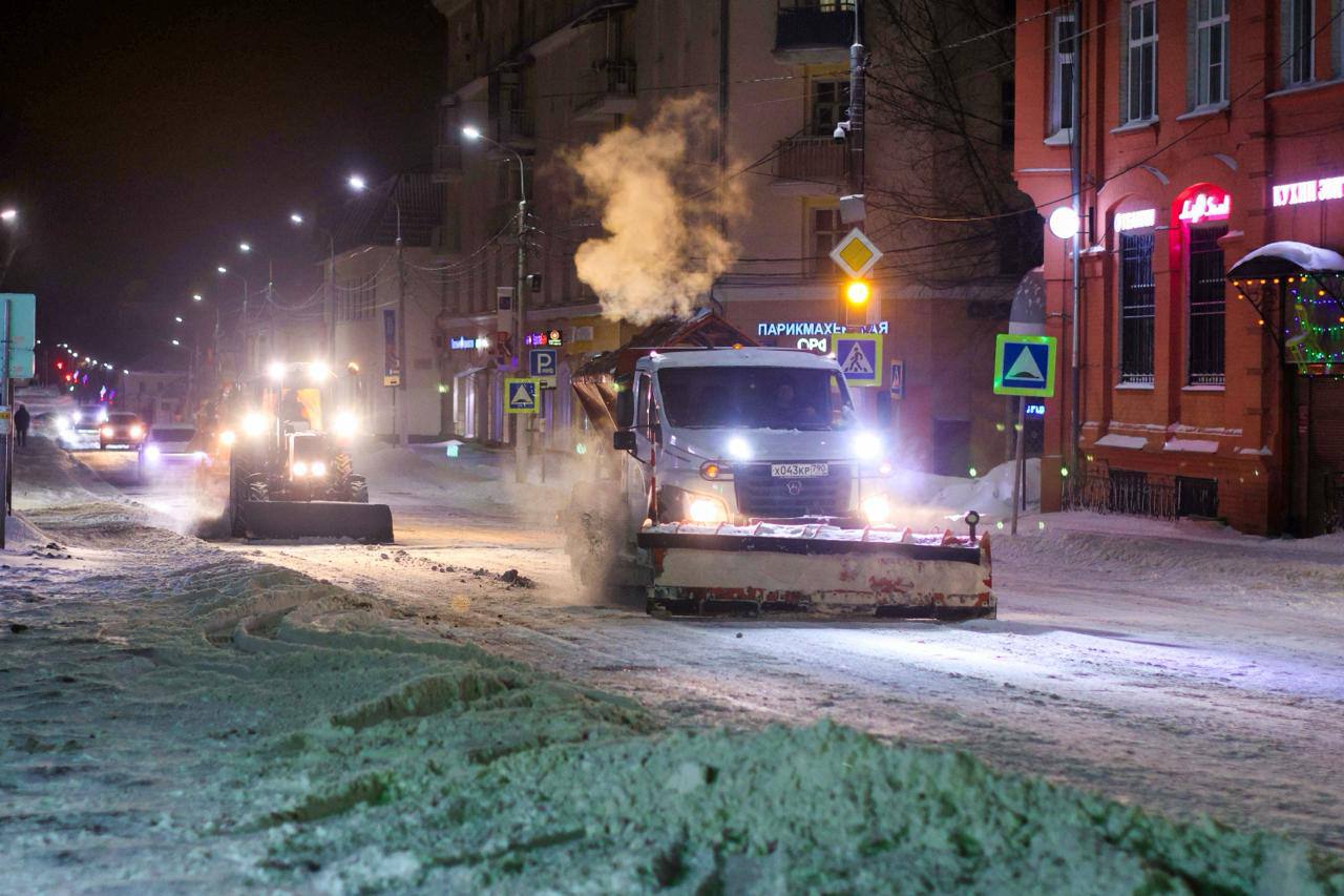 За ночь вывезено более 1 000 кубометров снега. В первую очередь работы велись на магистралях, маршрутах общественного транспорта, подъездах к социальным учреждениям.