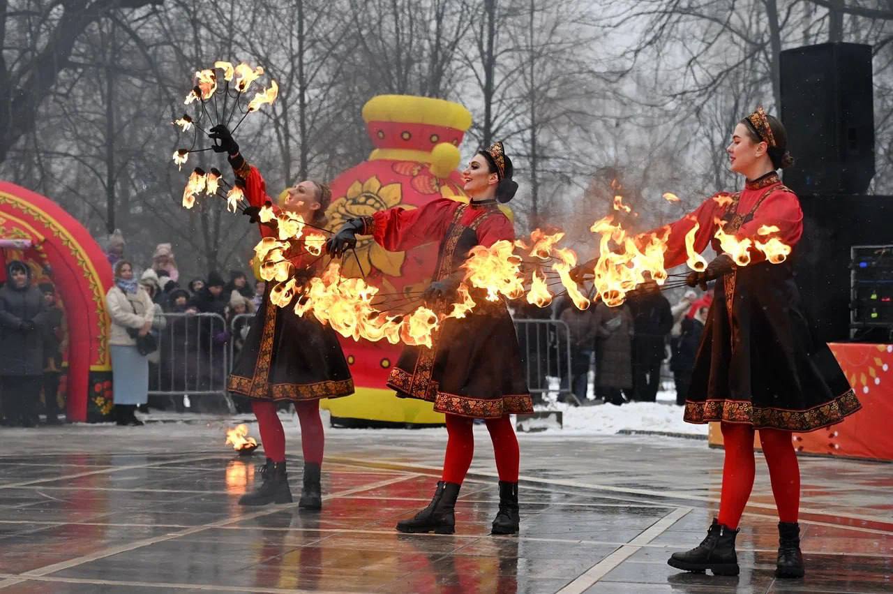 Кульминацией масленичных гуляний станет огненное шоу в 15:45 от театра огня и света "Богема" и прощание с Масленицей.
