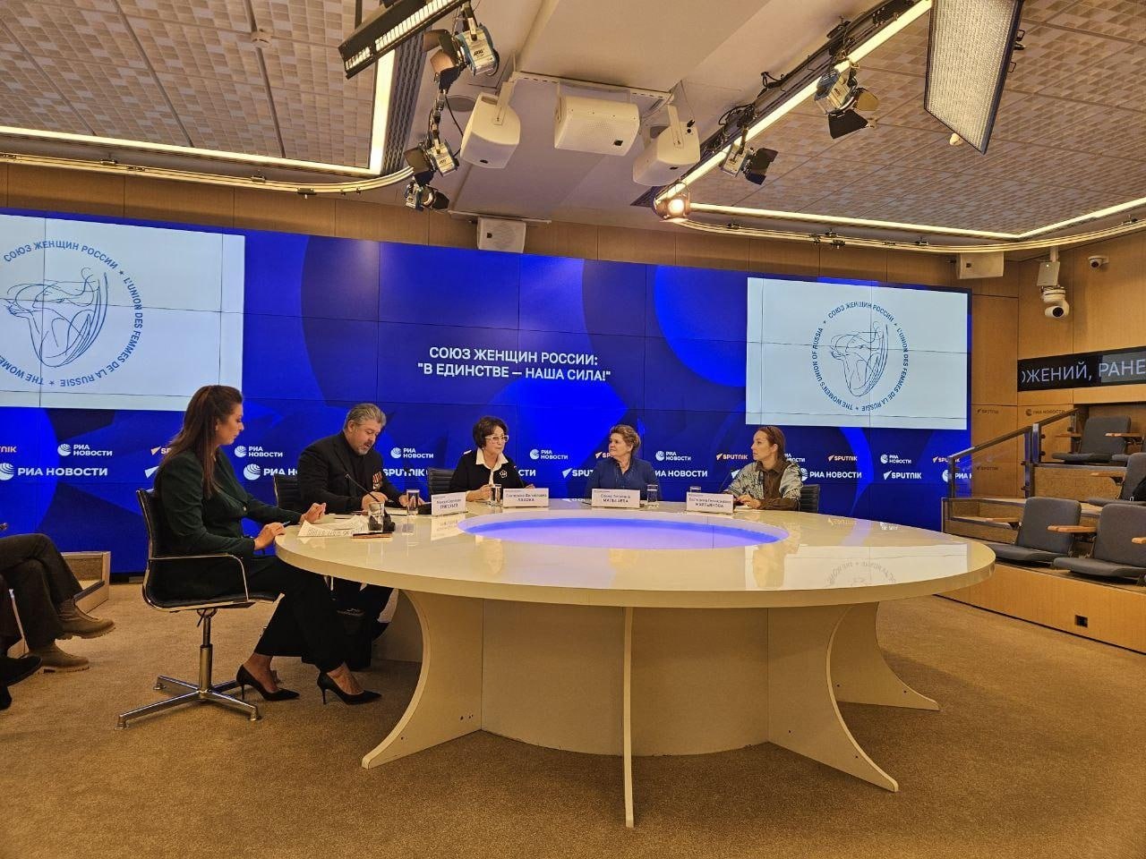 На площадке Международного мультимедийного пресс-центра (МИА «Россия Сегодня») в Москве Союз женщин России организовал международный телемост «В единстве - наша сила!».