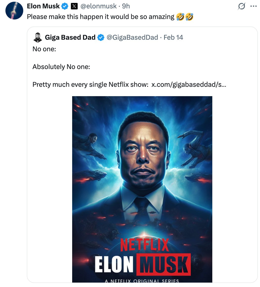 Илон Маск троллит студию Netflix, известную своей гипертрофированной политкорректностью и инклюзивным кастингом.
