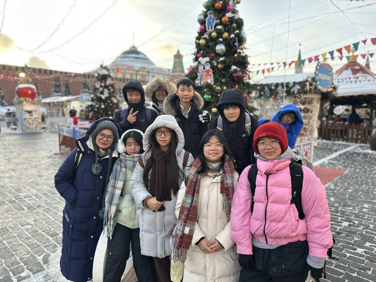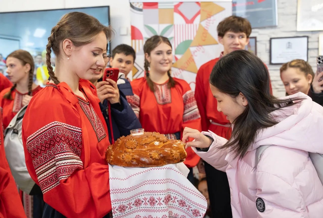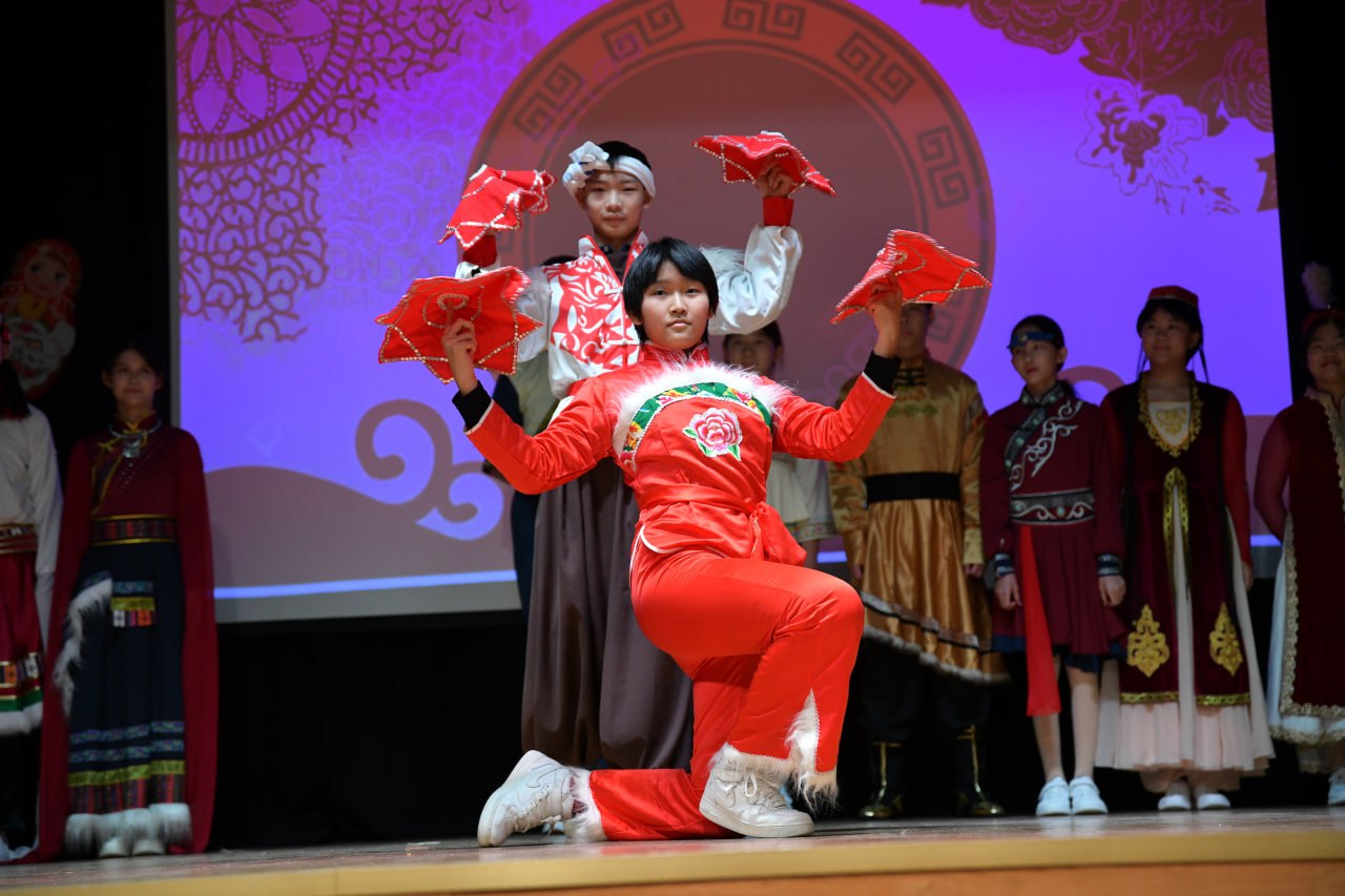 Финал получился по-настоящему праздничным: визит совпал с Масленицей. Во дворе гимназии — гуляния, чай и блины, а на закрытии китайские школьники выступили с народным танцем в национальных костюмах. Всем участникам вручили сертификаты международной программы.