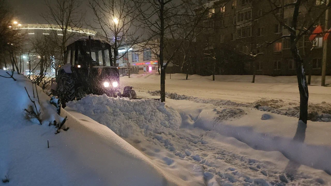 В Щелкове коммунальные службы вышли на ночную уборку снега и наледи. Работы велись практически без перерывов: с 22:30 техника расчищала улицу Комарова, параллельно внимание уделялось и пешеходным зонам.