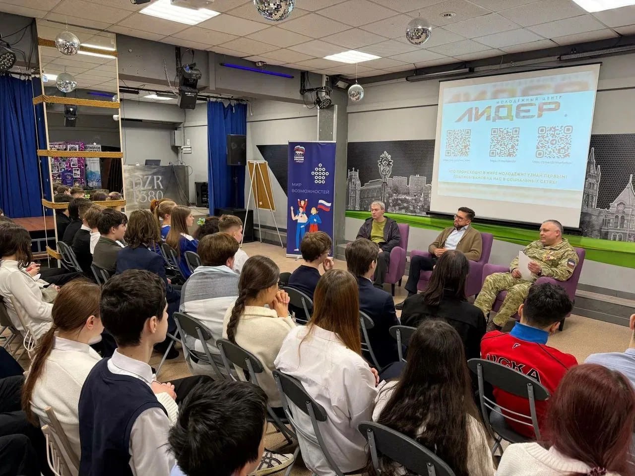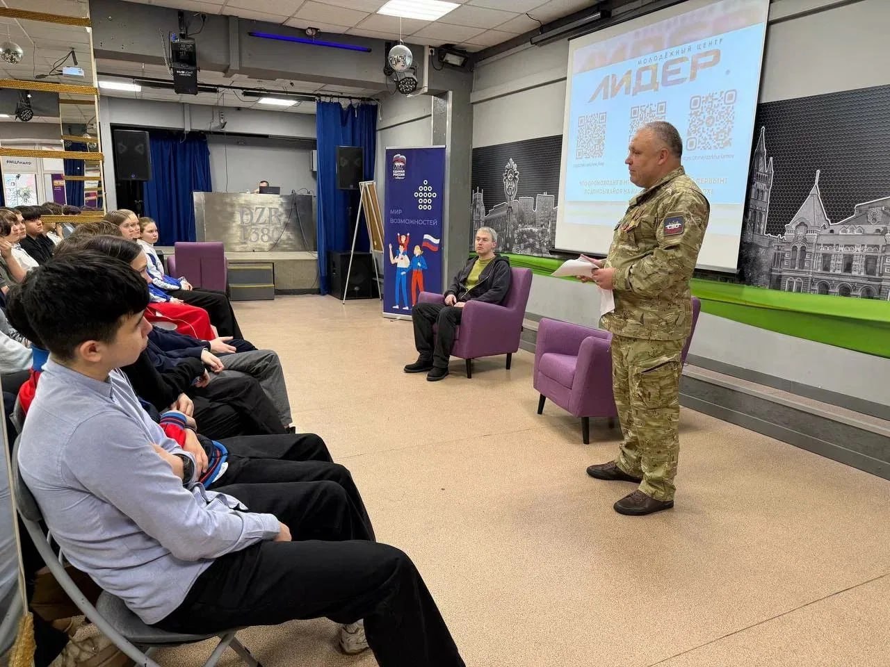 К диалогу с молодежью присоединился член люберецкого отделения Ассоциации ветеранов СВО Олег Золотухин.