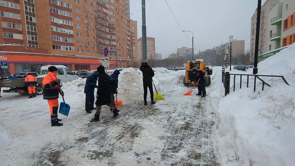 Управляющие компании с 6 утра вышли убирать тротуары вдоль домов и входные группы в подъезды.