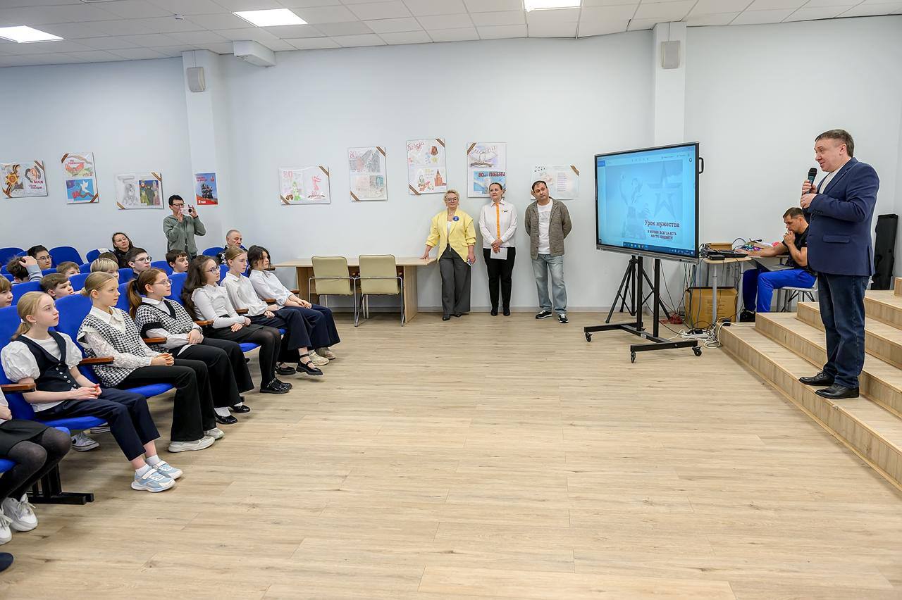 На встрече он рассказал учащимся о воинской службе, значении праздника 23 Февраля, а также поразмышлял с ребятами о понятиях мужества и любви к Отечеству. Особую часть программы составило знакомство с творчеством гостя: Александр Новиков — автор ряда документальных фильмов, и на уроке мужества он показал учащимся одну из своих работ, посвящённую его жизненному пути.