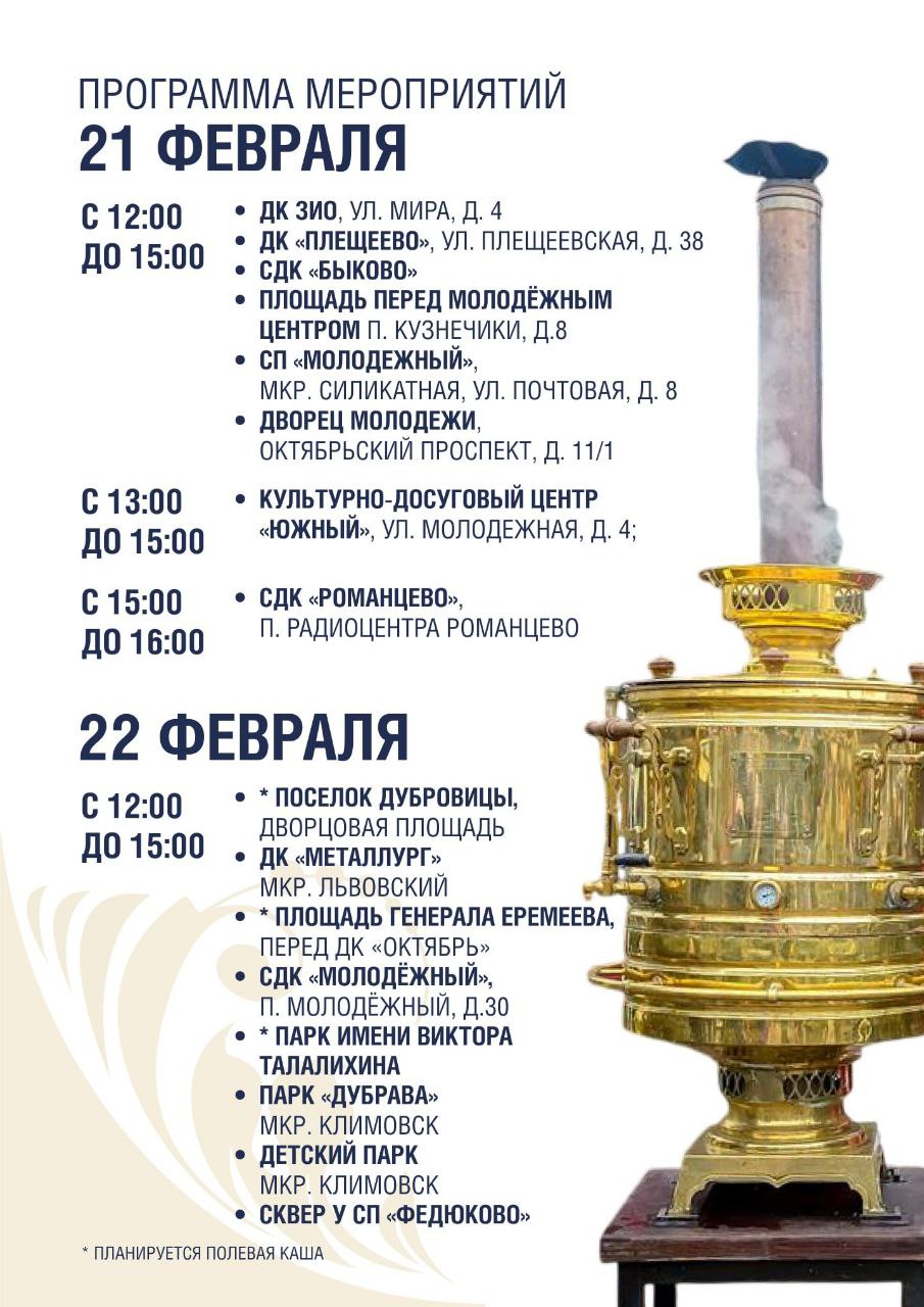 Наши парки тоже подготовили насыщенную программу. Вас ждут праздничные концерты и угощение. Испечм 6 000 блинов — хватит всем!