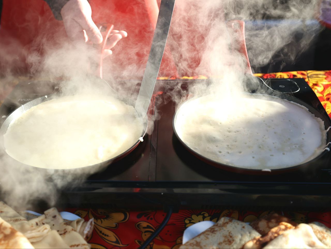Румяные, ароматные, с пылу с жару – перед началом нашего ледового спидвея вместе с детишками испекли блины и угостили всех желающих!