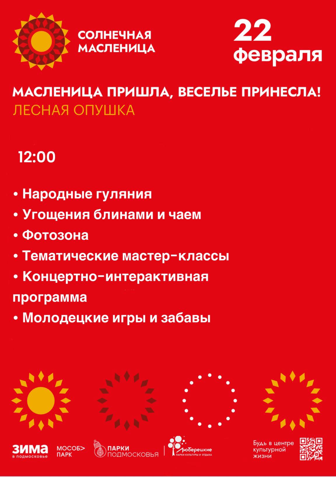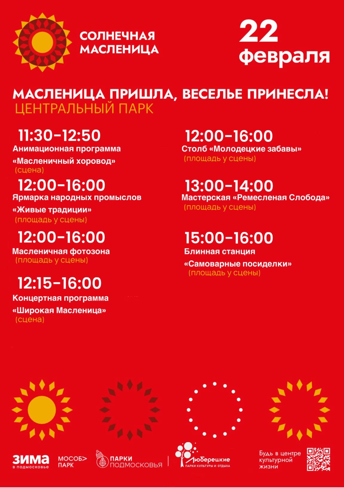 Приглашаем вас отметить Солнечную Масленицу в люберецких парках!