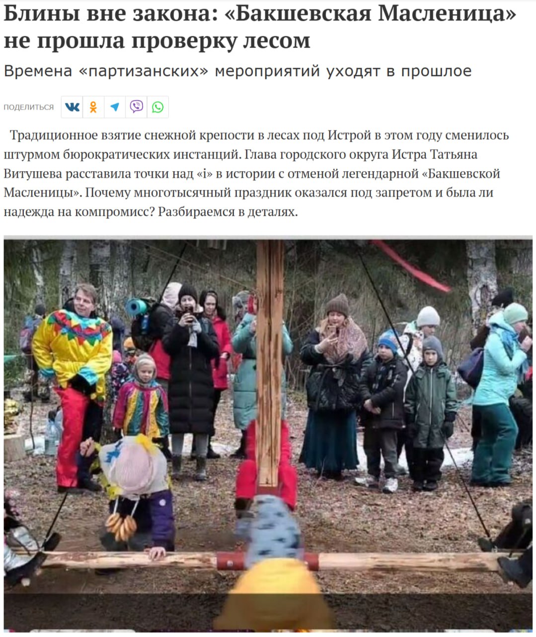 Бакшевская Масленица была отменена в 2026 году властями муниципального округа Истра (Подмосковье), где она традиционно проводилась около 40 лет.