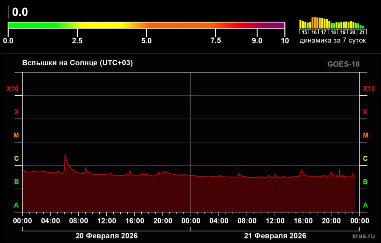 После бурного января и начала февраля солнечная активность резко пошла на спад, пишет РИА Новости. По данным ученых, индекс активности опустился до нулевого уровня, впервые с апреля 2024 года.