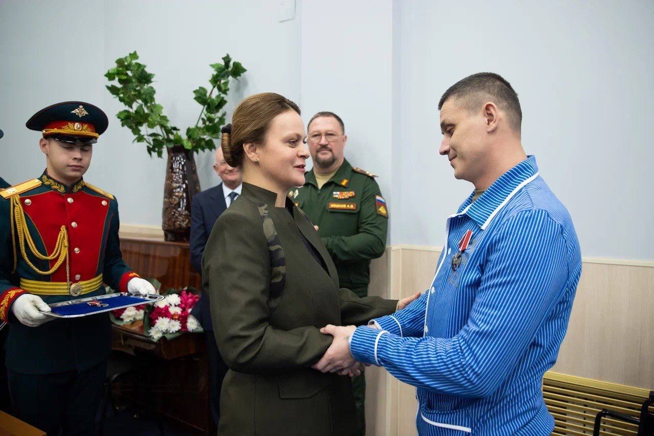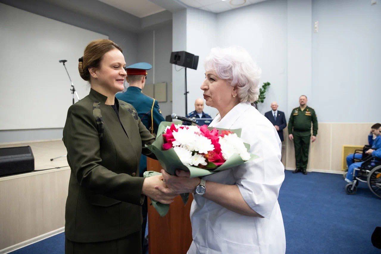 Вручила государственные и ведомственные награды военнослужащим – участникам специальной военной операции, проходящим лечение и реабилитацию в 1-м филиале Центрального военного клинического госпиталя им. А. А. Вишневского в Подмосковье.