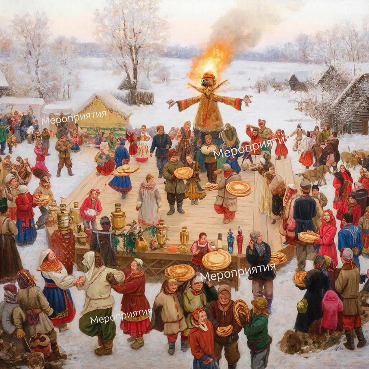 Главным символом последнего дня является чучело зимы, которое сжигают вечером на костре. Этот ритуал символизирует избавление от зимних невзгод и наступление долгожданной весны.