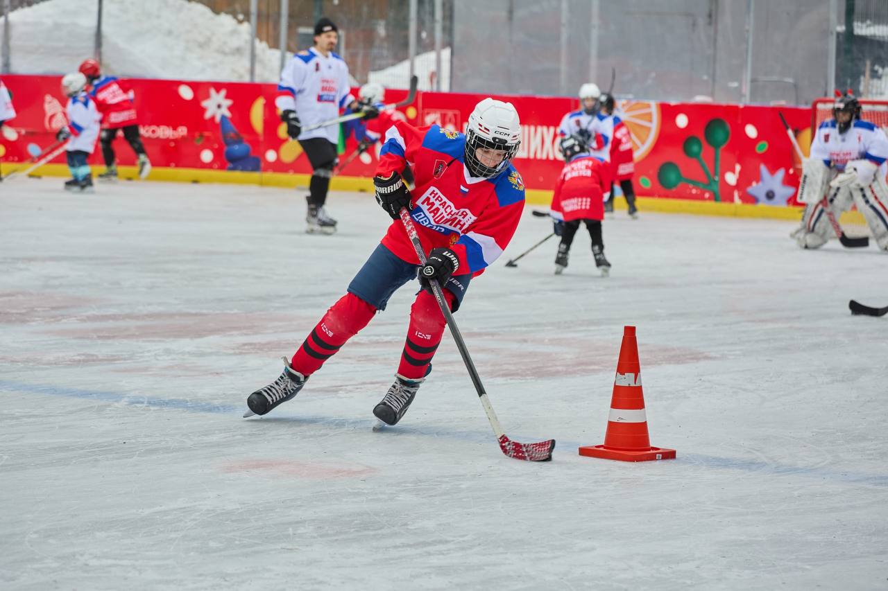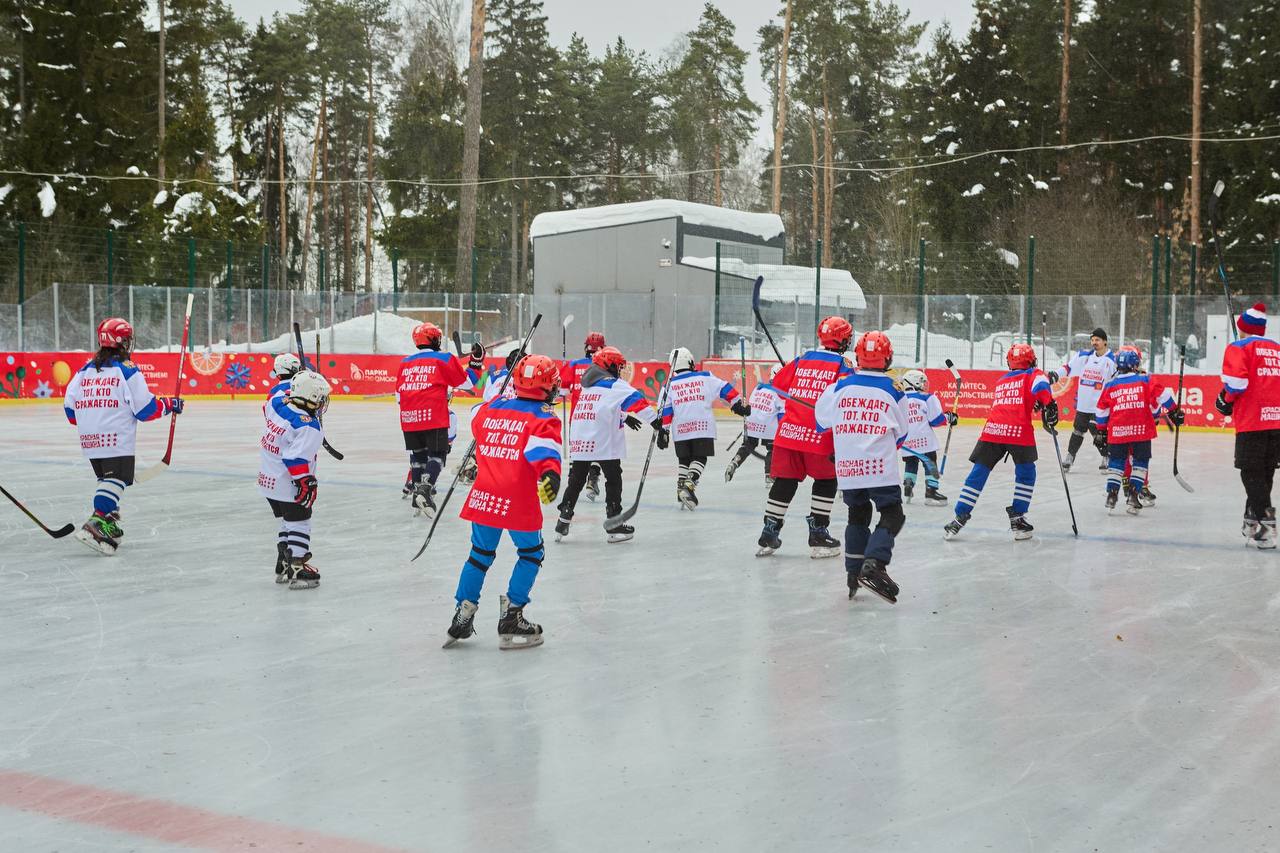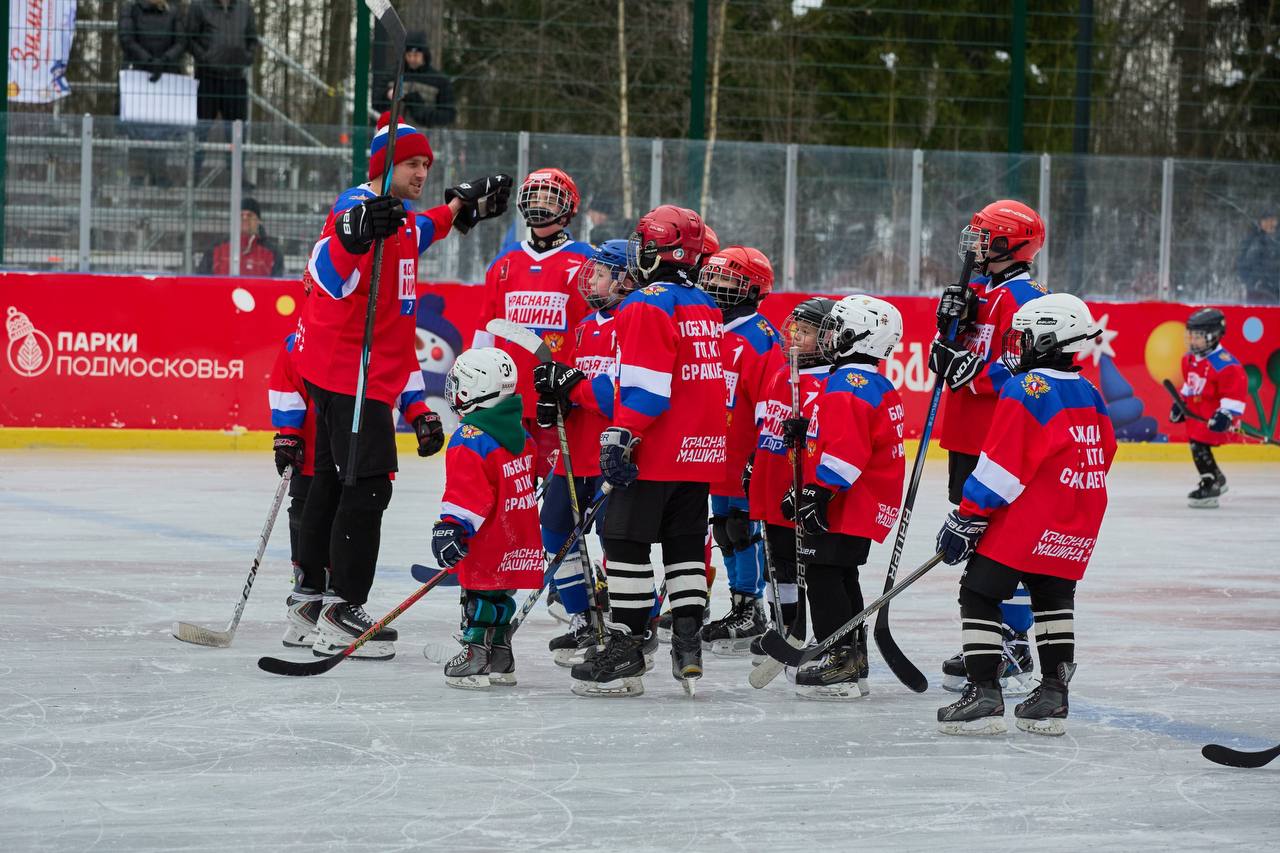 Юные хоккеисты Балашихи вместе с папами и дедушками вышли на лёд в рамках Всероссийского проекта «Красная Машина ДВОР – связь поколений». Мероприятие прошло в Пестовском парке.
