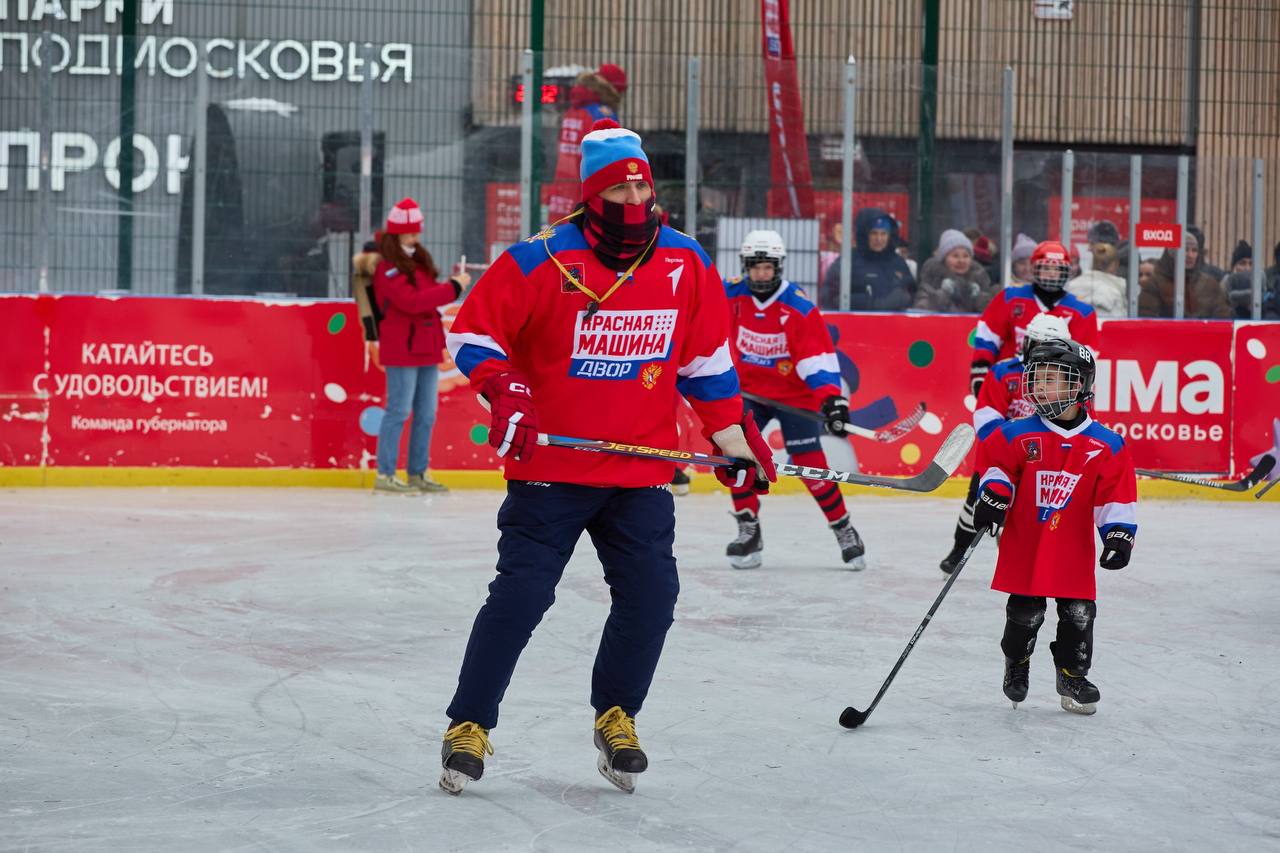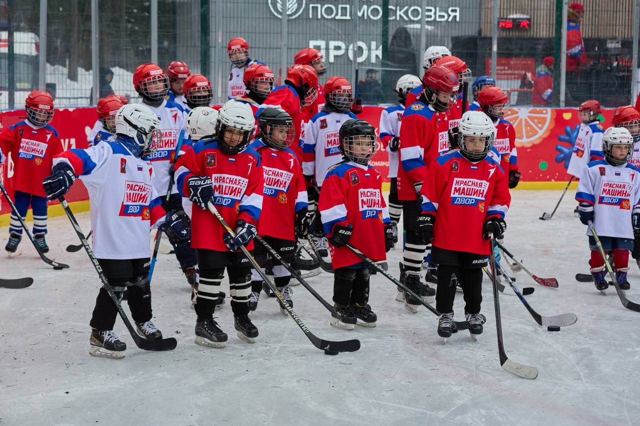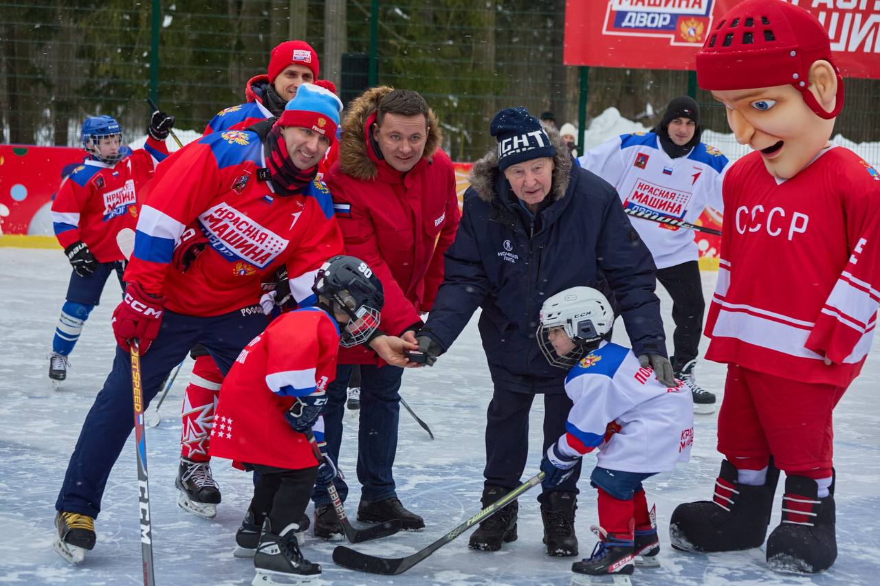 Проект «Красная Машина ДВОР — связь поколений» реализуется при поддержке Губернатора Московской области и «Движения Первых». Тренировки проходят под руководством тренеров Федерации хоккея России и школы «Красная Машина Юниор» в рамках национальной программы «Красная машина».
