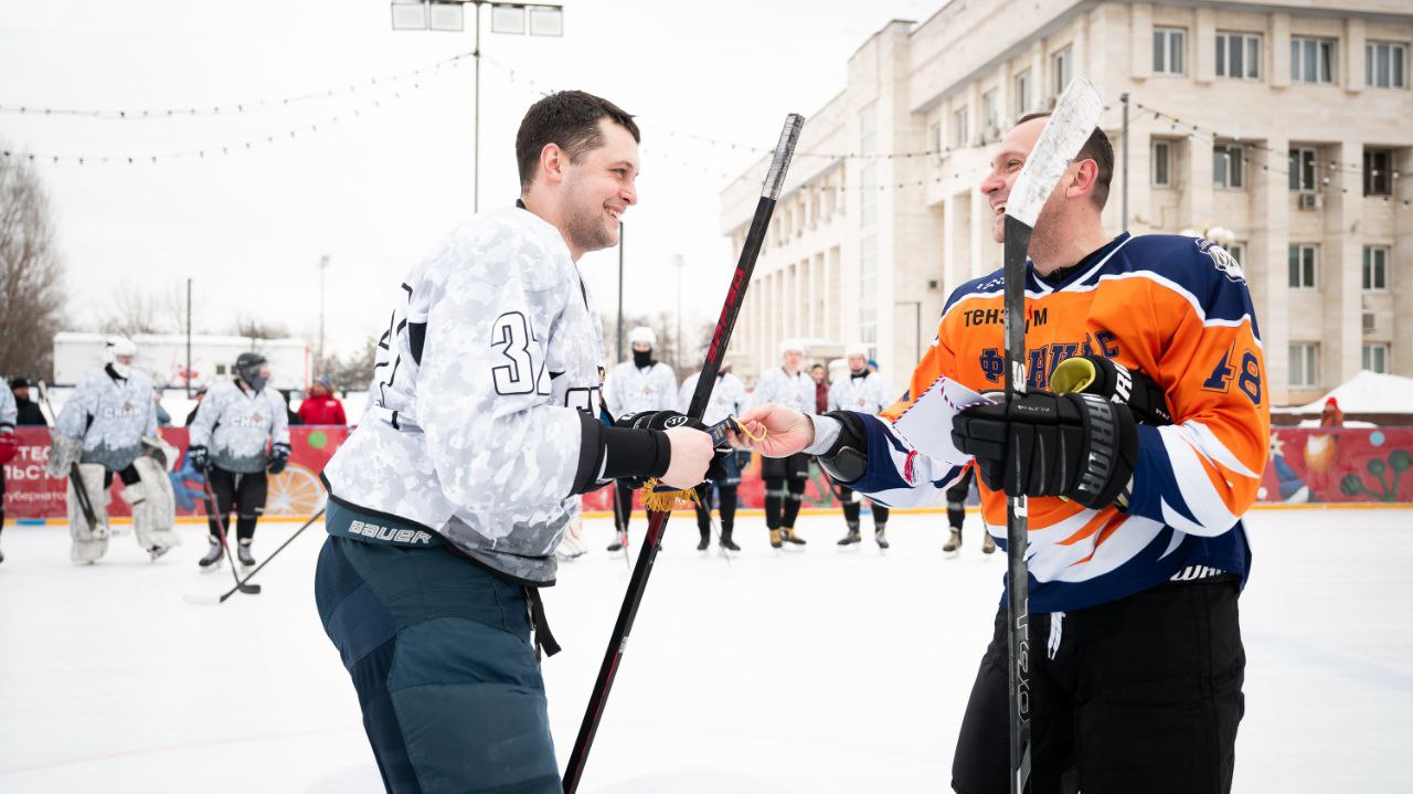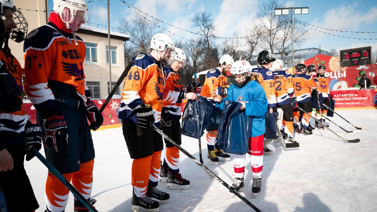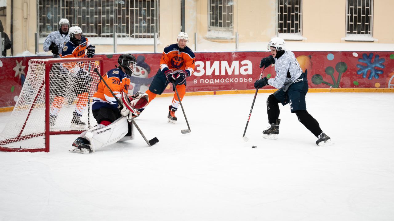 Хоккейный матч, посвященный Дню защитника Отечества, состоялся на Центральном катке Люберец.